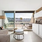 Denna lägenhet på 32 m^2 har plattskärms-TV med satellitkanaler och luftkonditionering i varje rum.